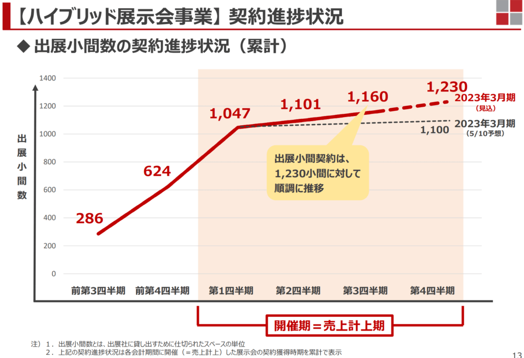 また、ハイブリッド展示会事業については、FY2022において売上高の計上はありませんが、主な収入である出展料が出展小間数×小間単価となり、小間単価に大きな変動がないため、出展小間数を重要な指標としています。